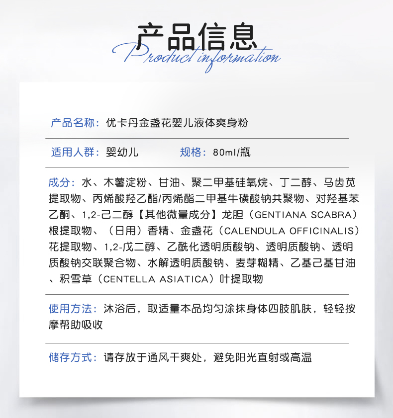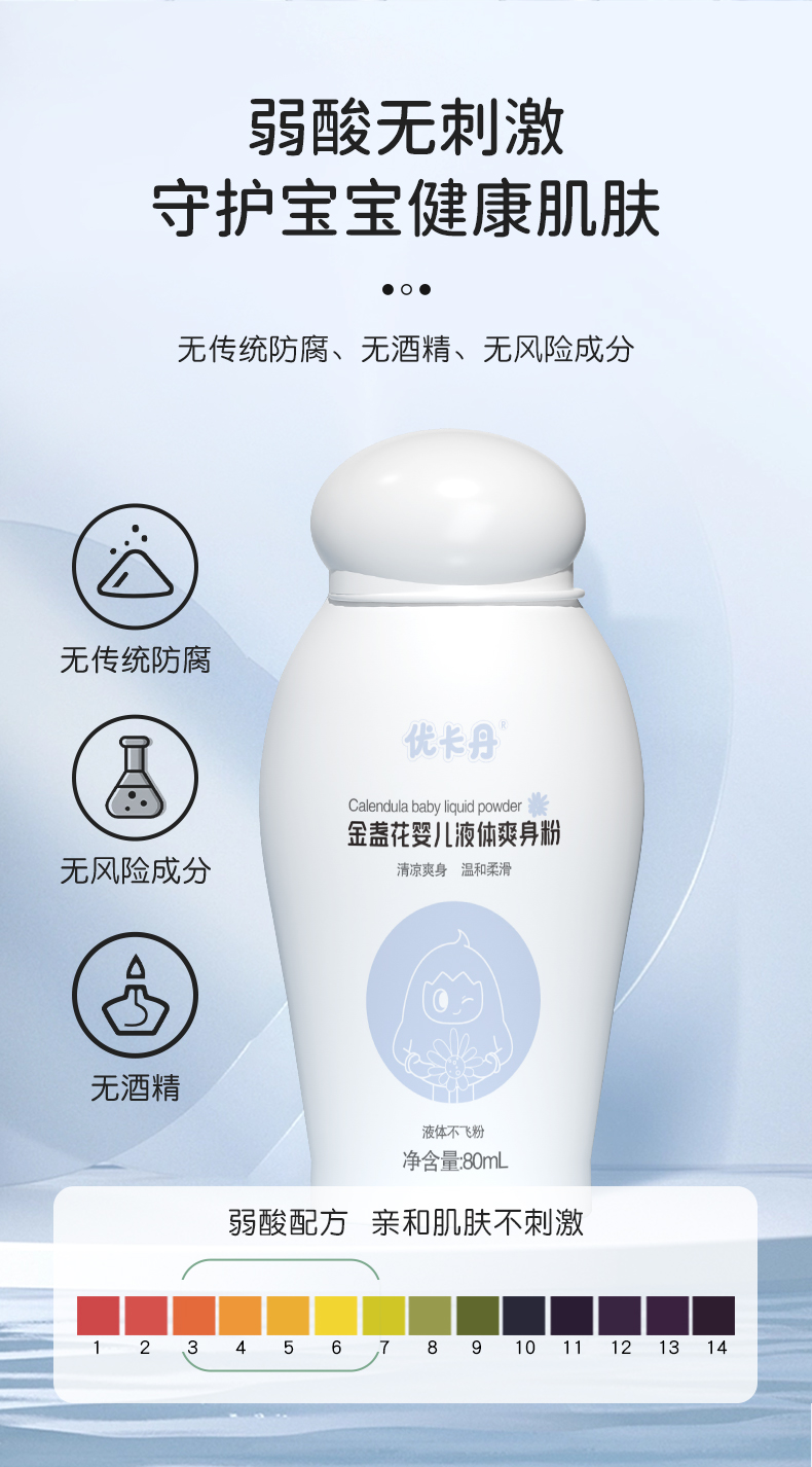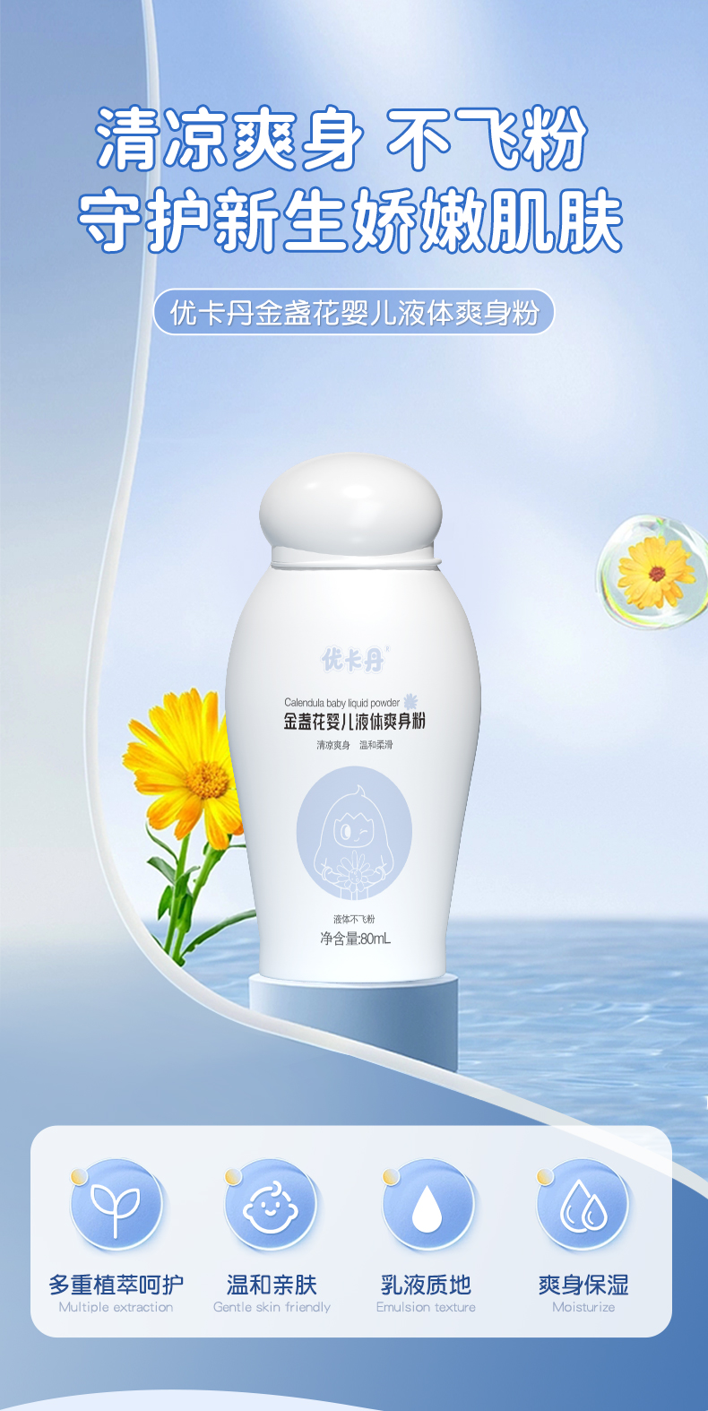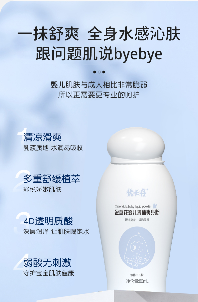 產(chǎn)品名稱:優(yōu)卡丹金盞花嬰兒液體爽身粉