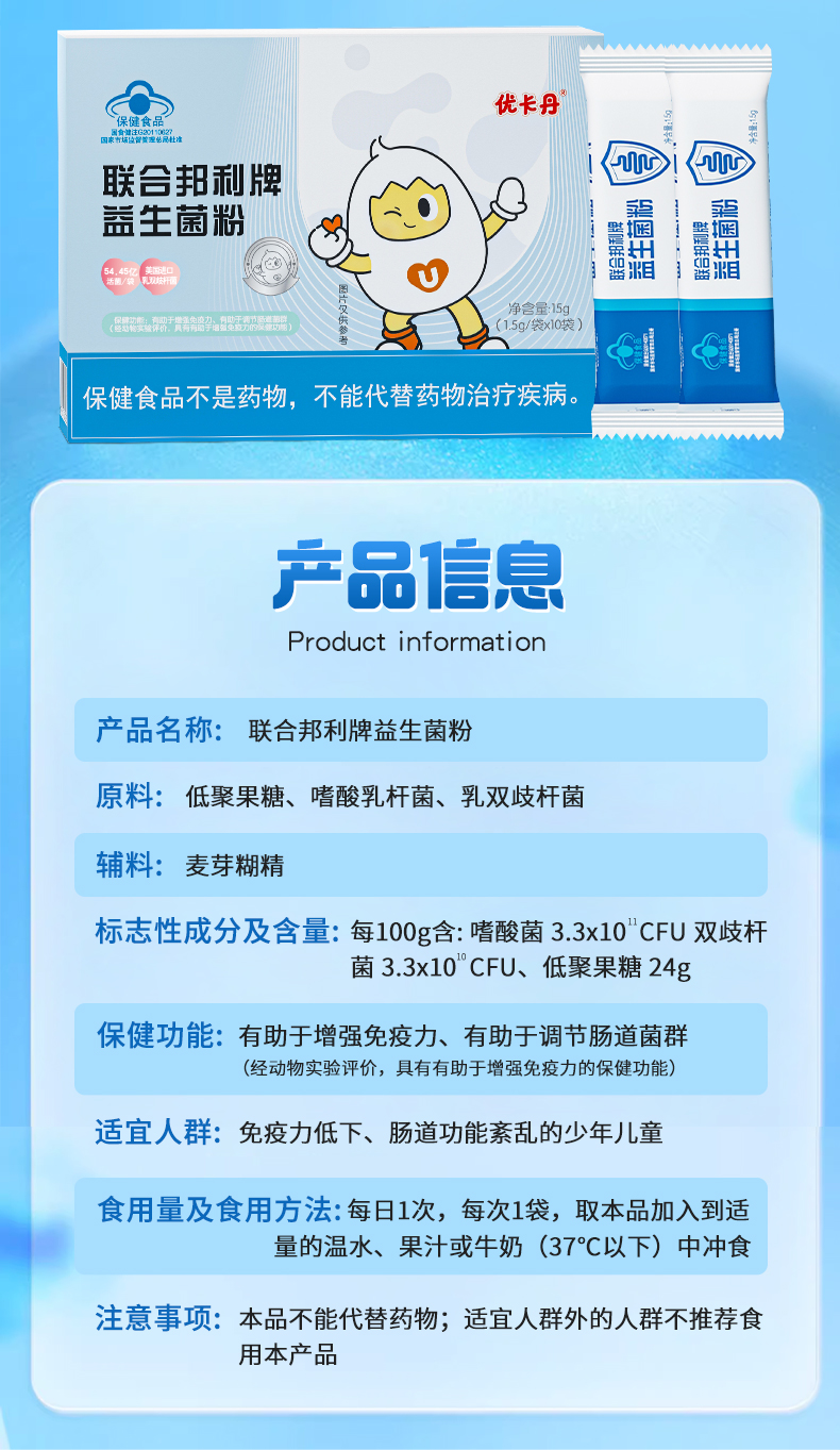 產(chǎn)品名稱:優(yōu)卡丹聯(lián)合邦利牌益生菌粉
