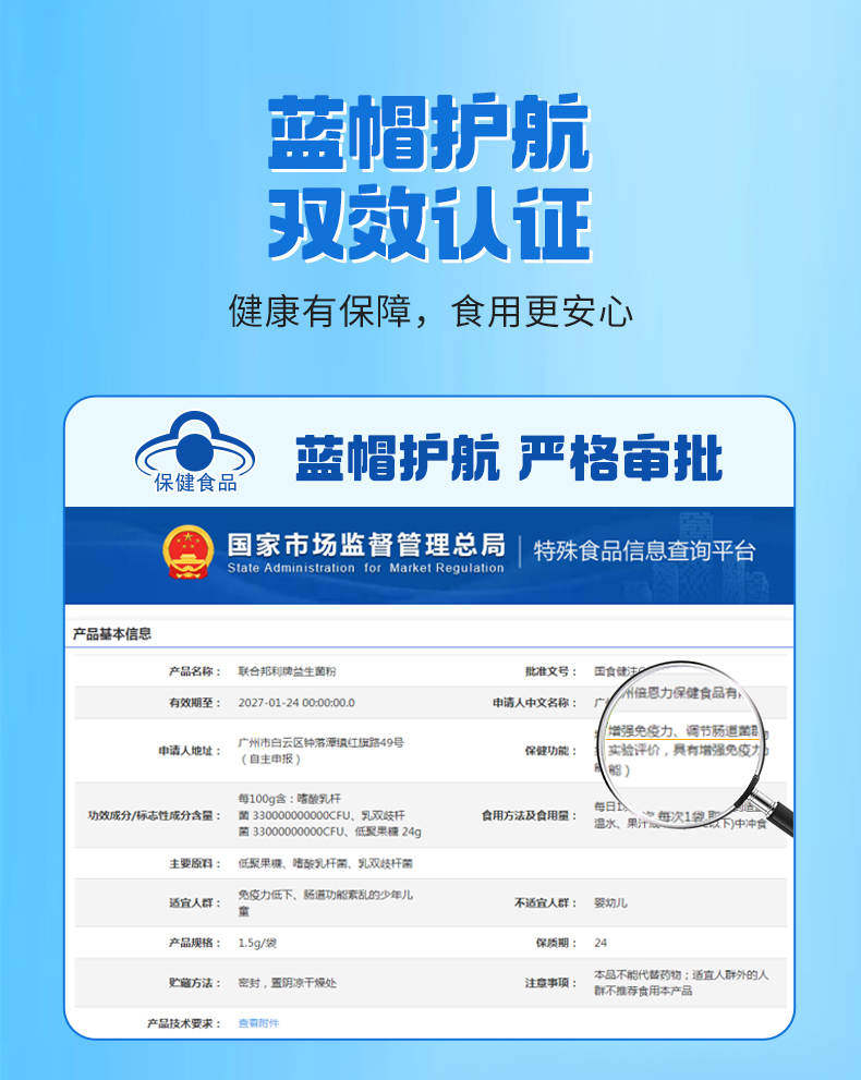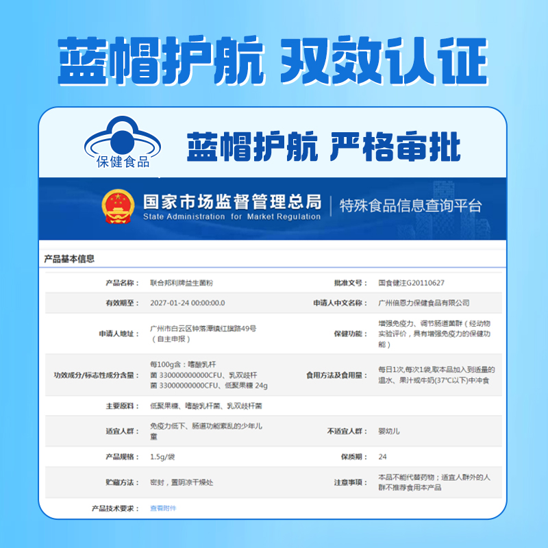 保健功能:有助于增強(qiáng)免疫力、有助于調(diào)節(jié)腸道菌群(經(jīng)動(dòng)物實(shí)驗(yàn)評價(jià),具有有助于增強(qiáng)免疫力的保健功能)