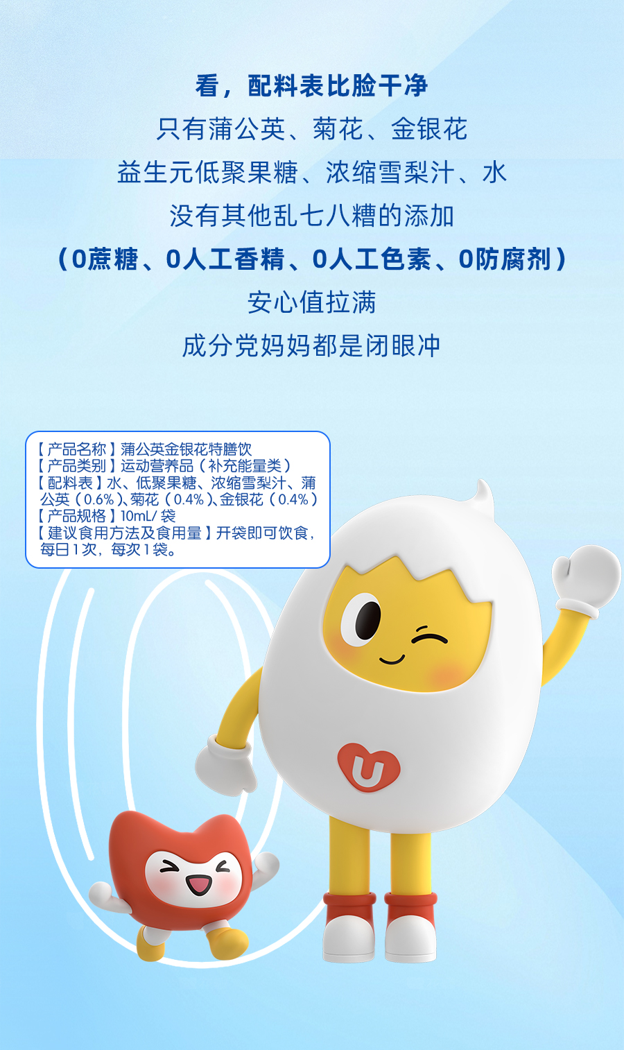 【配料表】水、低聚果糖、濃縮雪梨汁、蒲公英(0.6%)、菊花(0.4%)、金銀花(0.4%)