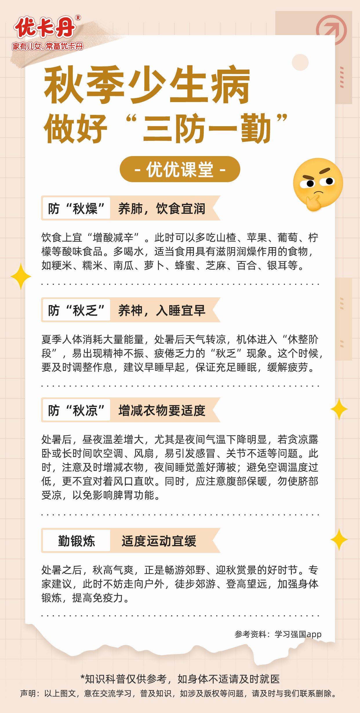 優優課堂│秋季少生病,做好“三防一勤”很重要