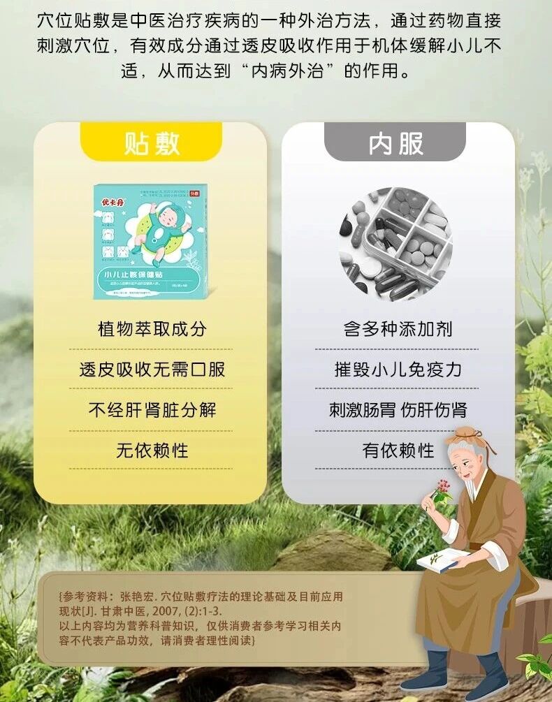 更貼心的是,它不用口服,而是通過(guò)穴位滲透發(fā)揮作用,避免了藥物對(duì)寶寶腸胃和肝臟的負(fù)擔(dān),溫和地幫寶寶緩解咳嗽、順暢呼吸。