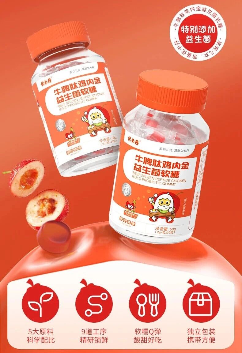優(yōu)卡丹牛脾肽雞內(nèi)金益生菌軟糖│正確貼秋膘,長個長肉不積食