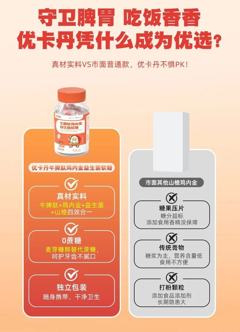 秋膘沒貼上還積食?孩子脾胃差,這顆“開胃軟糖”——優(yōu)卡丹牛脾肽雞內(nèi)金益生菌軟糖或許能幫上忙,讓消化功能慢慢“跑起來”。