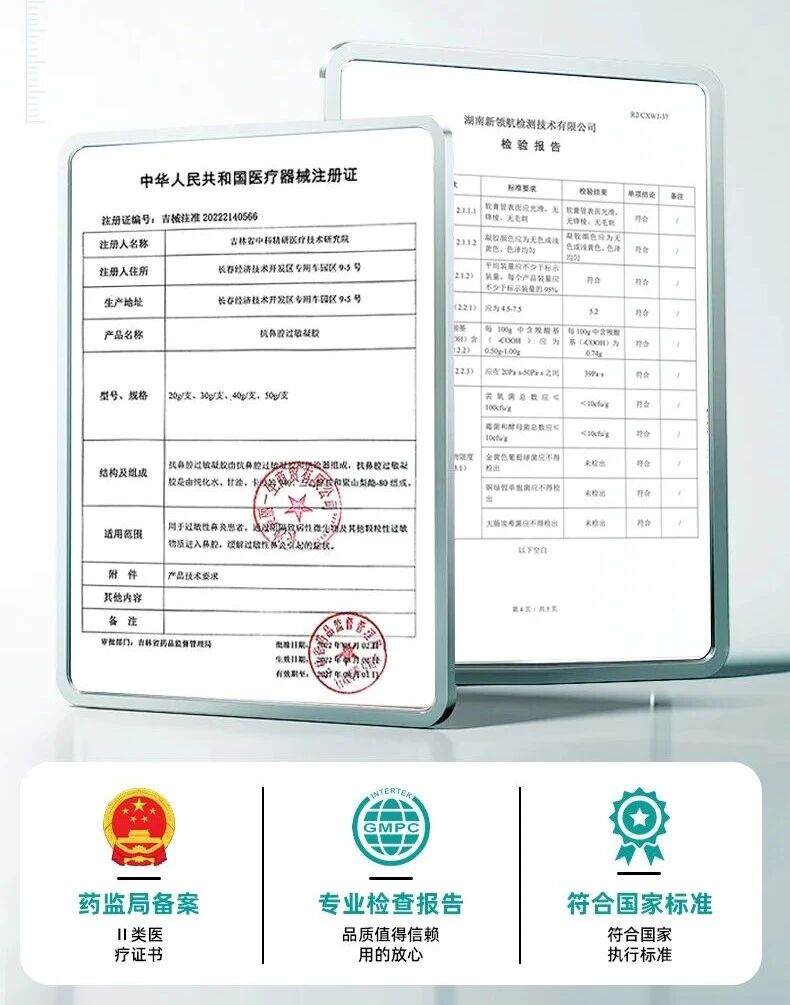 更值得一提的是,優卡丹抗鼻腔過敏凝膠可不是普通的護理產品,它是經過藥監局備案的二類醫療器械,擁有“晉械注準 20242140161”的專業認證,還通過了專業檢查報告的驗證,品質有保障。