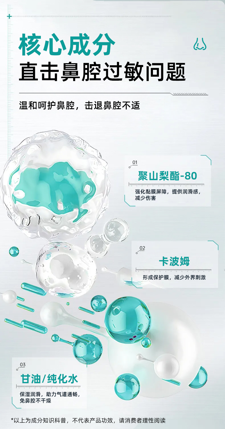 【適用范圍】該產品用于過敏性鼻炎患者,通過阻隔致病性微生物及其他顆粒性過敏物質進入鼻腔,緩解因過敏性鼻炎引發的相關癥狀。